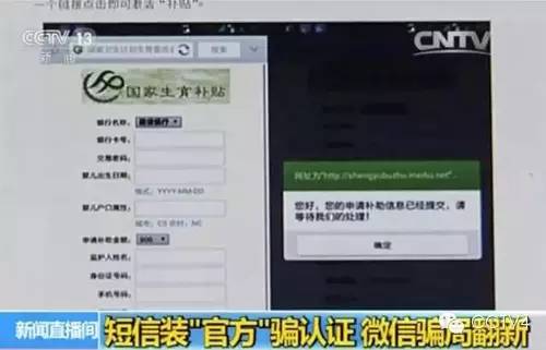 不少用户还收到了这样的短信:“根据2015年国家惠民政策规定,新出生的宝宝可以享受新生儿补贴800元。”和“实名补录”的骗局类似,这些骗术都是打着“国家新政策”的旗号行骗。专家提示,为了保证申请人的真实性,无论是银行还是社会福利发放部门,都会对信息进行严格的审核,不会要求通过网上填写的简单方式提交。