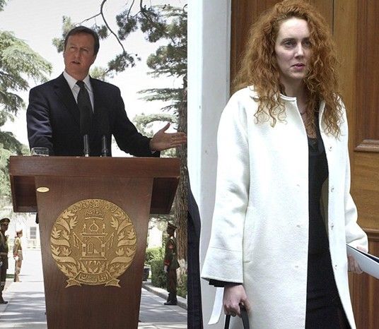卡梅伦谴责新闻国际公司《世界新闻报》窃听行径(左);新闻国际公司执行长布鲁克斯称对窃听“不知情”(右)