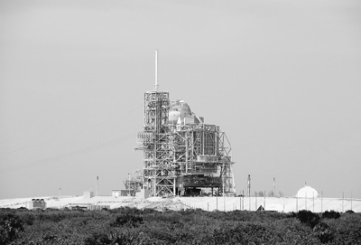 最后一次登上发射台的“阿特兰蒂斯”号。 记者 陈一鸣 摄