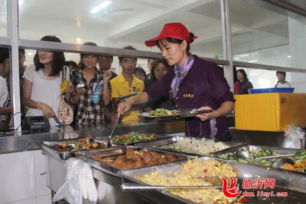 食堂卫生有保障。食堂由学校内部承办,干净卫生,饭菜可口,种类多样。食堂人员身着整齐统一的服装,认真为同学们打饭。