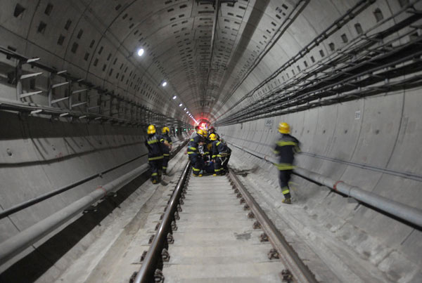 9月27日,救援人员在上海地铁十号线事故现场营救。当日下午,上海地铁十号线因设备故障,导致一起追尾事故,有乘客受伤。具体原因正在调查中。新华社发(钮一新 摄)