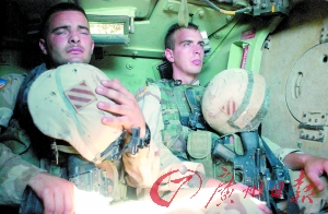 疲惫 2003年7月,两名在返回营地途中的美第三步兵师士兵坐在车中休息。
