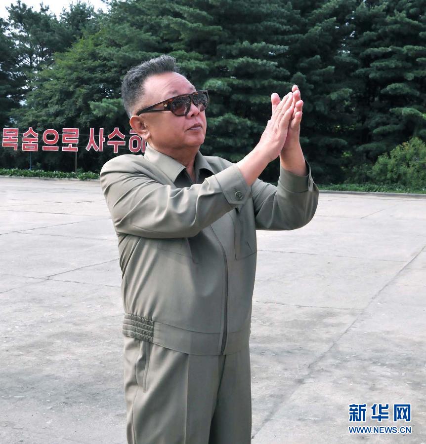 2011年12月5日朝鲜最高领导人金正日视察平壤凯旋青年公园朝中社12月4日提供的照片显示,朝鲜最高领导人金正日(前中)近日视察了平壤凯旋青年公园。