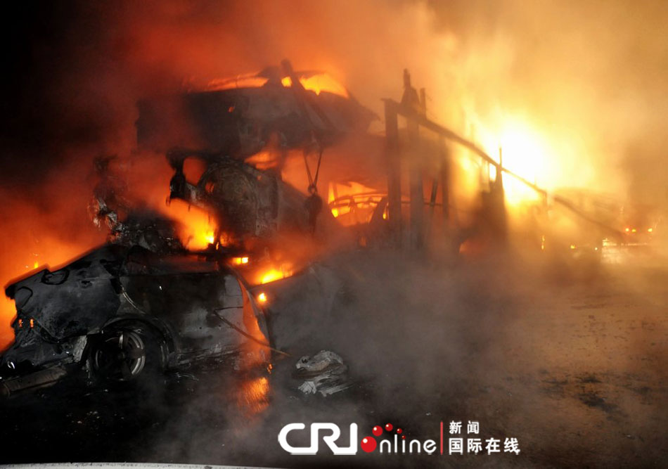 京昆高速4车相撞 12辆宝马车被烧毁(高清组图)