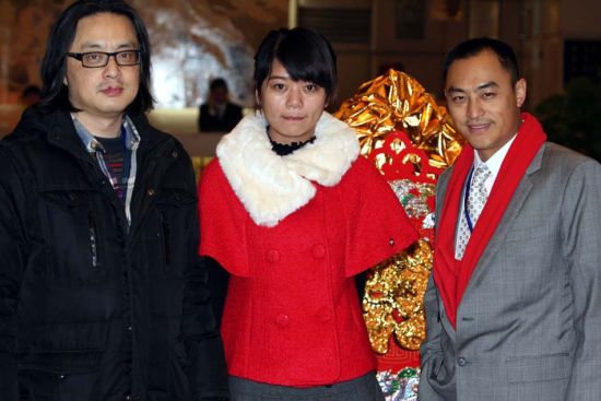 图为:著名搏击赛事现场导演张旭和上官鹏飞女友王诗吟以及WBC Muay Thai中国区官员托尼-陈的合影。