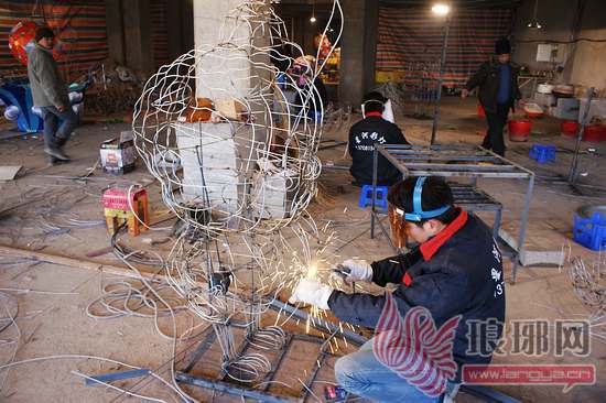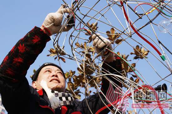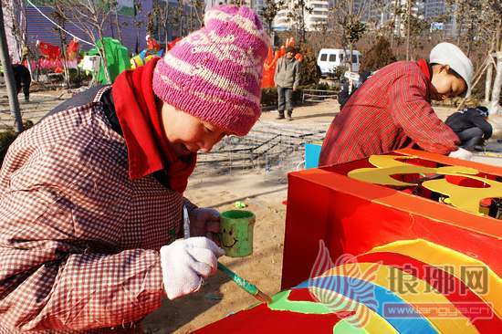 8日,凤凰广场龙年灯会灯组制作现场,工人们正在忙碌,扎制龙骨、绘制图案、固定彩绸,好不热闹。据介绍,龙年灯会时间定于2012年1月25日—2月8日,地点在滨河景区凤凰广场,届时市民可免费参观。