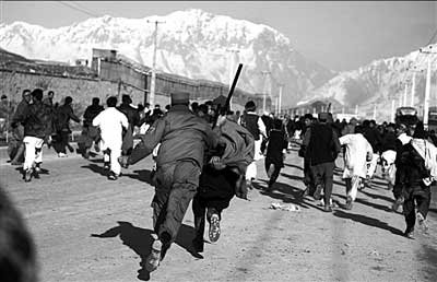 2月24日,在阿富汗首都喀布尔,警察驱散示威者。新华社发
