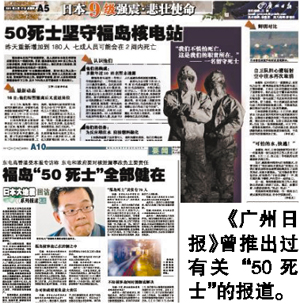 2011年6月 东电对外新闻发言人、广报部主任永井义一接受《广州日报》记者专访表示,福岛“50死士”行为是自愿的。并且,不止50人,而是70人。我可以通过你们告诉全世界,70个人的身体状况很好,非常健康,没有一个人死亡。