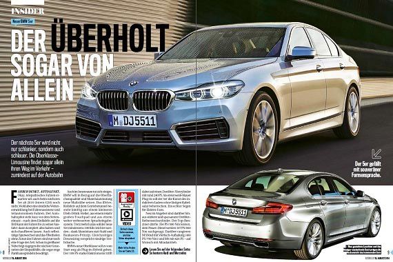 随上市日期的临近,有关全新一代宝马5系车型的报道已经越来越多。前段时间,我们曾经对全新一代宝马5系轿车的测试谍照进行了报道。日前,有海外媒体报道称全新第七代宝马5系车型(内部产品代号G30)将在2016年上市,并对全新宝马5系四门轿车的预想官图进行了报道。据海外媒体推测,由于现款宝马5系的市场表现强劲,全新宝马5系轿车将会保留现款宝马5系的设计理念。预赏图上也验证了这一结论,全新第七代宝马5系轿车采用了更加流畅和运动的车身线条,与现款车型相比更加运动。同时,车辆前引擎盖更加向前倾斜,配以刚劲有力的引擎盖线条,更加突出车辆的运动风格。经典的镀铬双肾型散热格栅,与修长的前大灯巧妙地结合在一起,再加上LED日间行车灯,让人看上去更加有气势。在车身尾部,车辆采用了简洁的尾部线条和镀铬双排气尾喉,并保留了经典的鲨鱼鳍式天线。在内饰方面,全新宝马5系将采用尺寸更大的LCD显示屏,方便驾乘者操控。