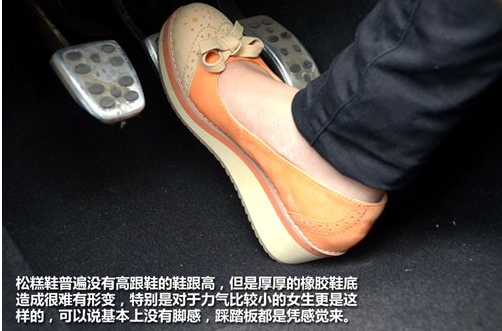 每个女生都有几双松糕鞋,虽然类型与高跟鞋完全不同,但在驾驶时的隐患与高跟鞋类似。首先是很厚的鞋底基本上不会有什么形变,可以用脚感极差来形容,另外就是不能很好的判断踩踏板的深浅,很容易操作不到位或者过度。不知道有没有人穿木屐开过车,穿这种完全没有形变的鞋子还能感觉到脚下踩的是什么?