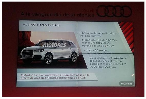 最新资料显示,新一代奥迪Q7 e-tron所搭载的混合动力系统是由一台最大功率128马力的电动机以及一台最大输出功率258马力的3.0 TDI发动机组合而成,该动力系统综合输出功率可达到374马力。另外,在纯电模式驱动下,新车最大续航里程为58公里。油耗表现方面,新车百公里综合油耗仅为1.7升。