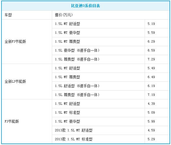 比亚迪3系 推出节能版 售4.39-7.29万元