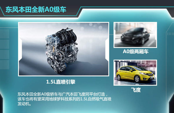 目前关于东风本田全新小型车的相关信息还不得而知,但以该车的定位,新车将与广汽本田飞度同平台打造,延续本田“双车型”战略。而在动力方面,新车也有望采用全新地球梦科技系列的1.5L自然吸气直喷发动机,最大功率为96kW,峰值扭矩则达到155Nm,百公里综合油耗最低位5.3L。