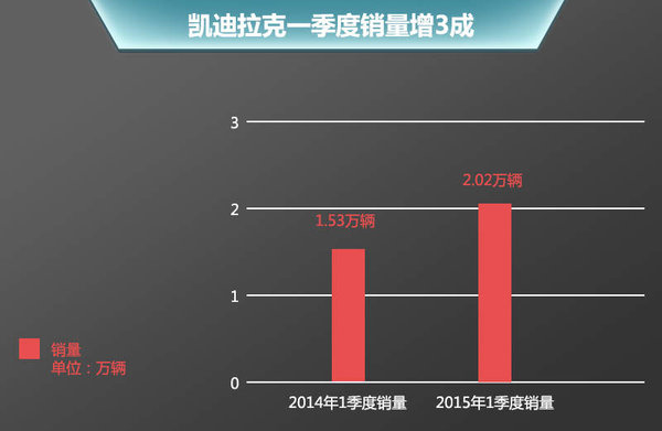2014年,凯迪拉克在华销量达到7.35万辆,过去三年增长幅高达150%,保持了积极的发展态势。按照此前凯迪拉克公布的规划,2015年在华年销量目标为10万辆。今年1-3月,凯迪拉克品牌共销售新车2.02万辆,同比增长高达31.7%,实现了全年销售目标的20%。今年,凯迪拉克将继续通过采取在产品、营销等方面的措施进一步提升市场表现。