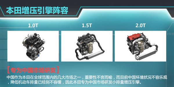 本田此前在中国媒体大会中共发布了1.5L、2.4L、3.0L三款自然吸气直喷引擎,以及针对中国市场研发的1.0T、1.5T、2.0T三款涡轮增压引擎,发动机产品序列得到进一步完善。相对来讲,本田在中国市场投放搭载增压引擎车型的时间相对较晚,这可能也是其2014年在华销量下降的原因之一。随着本田在增压发动机技术方面的逐渐成熟,旗下众多车型将会逐渐普及涡轮增压发动机,其品牌竞争力也会随之提升。
