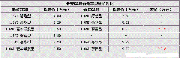 新款CS35 1.6MT尊贵型售价贵2000元 新增八项实用配置