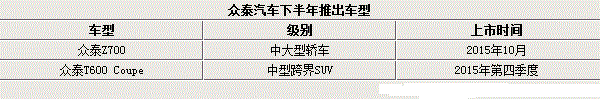 凭借中型SUV“T600”的热销,众泰在2014年取得了一份不错的销量成绩单。随着市场竞争环境的不断加大,单凭一辆车很难再去带动企业整体销量的提升。对此,众泰展开相应部署,欲在轿车和SUV领域同时投放新车型。日前,众泰汽车华南大区高辉在接受媒体采访时表示:“我们的一款C级轿车,叫众泰Z700,它的上市时间定为今年的10月份。另外T600 Coupe也会在今年四季度上市。”届时,众泰旗下的产品阵容将更加丰富。