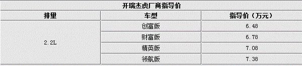 开瑞杰虎正式上市 售价6.48万-7.38万元