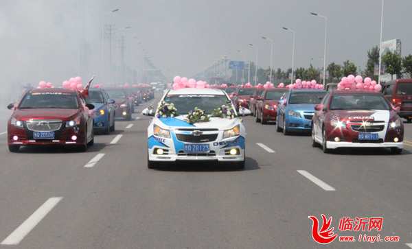 (临沂网汽车频道讯)8月25日早六点,来自临沂科鲁兹车友会的66辆装饰统一的雪佛兰科鲁兹汽车齐聚河东芝麻墩百易家装饰城广场,声势浩大喜气洋洋。扎彩车,接新娘,66位车主为了给车友王凯的婚礼献上他们最诚挚的祝福,在这里整装待发。