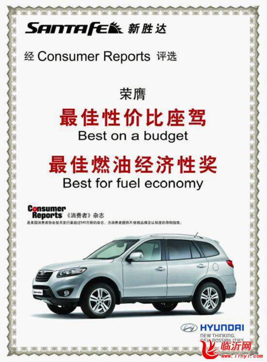 经Consumer Reports评选,新胜达荣膺“最佳性价比座驾”及“最佳燃油经济性奖”。Consumer Reports《消费者》杂志是美国消费者协会按月发行量超过540万册的杂志,为消费者提供不依赖品牌及认知度的导购指南。