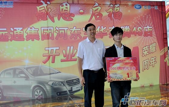 远通集团河东汽车超市总经理闫宗华先生在周年庆典上,为宝华公司祝福,希望宝华公司的发展越来越好。为答谢新老客户对宝华公司的关爱与支持,活动现场还对老客户进行了抽奖,用回馈的方式来感谢车主朋友的大力支持。老客户徐先生深情对我们说:我们一直在关注国华、宝华奔腾,它的成长也是我们的骄傲,我们可以更加安心的在这里进行保养、维修等服务。因为远通集团的服务最好,我们买车称心、放心、舒心。奔腾让你很实在,买奔腾最值。