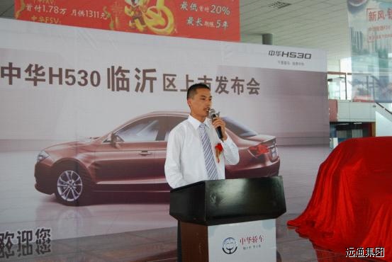远通集团临沂爱华华晨4s店执行总经理张军发表来宾致辞,并向来宾就该款车的市场定位、产品优势及技术优势隆重推介这款“以高起点打造精英挚爱”的中华H530。