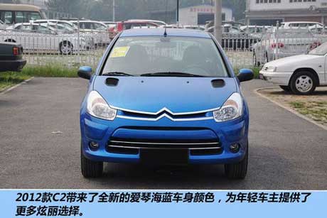 9月份上市的全新2012款C2总共有3款车型,其中1.4的两款均为手动型号,1.6的一款为自动型号。在颜色上,C2增添了“爱琴海蓝”颜色,配合原有的碳晶黑色以及波尔多红色三种颜色,提供给消费者更多的选择。