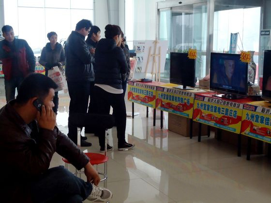 2011年11月26日,临沂九州汽贸携手海尔家电裸销特卖会火热进行中,今天虽然被雾气笼罩,但是依然没有减轻大家对这场盛会的热情,前来赏车试驾看车的客户是络绎不绝,活动现场人来人往,热闹非凡。长城汽车携手海尔、TCL、格兰仕等名牌家电联合放价, 全场车型享厂价“零”利润优惠,同时各知名家电、汽车精品均有惊爆价格售出,优惠幅度超过以往举办的同类型活动。这也是临沂汽车品牌首次携手家电产品送福客户朋友的真实写照,汽车、家电双丰收,置办大件过大年,截止26日中午订交车辆37台。