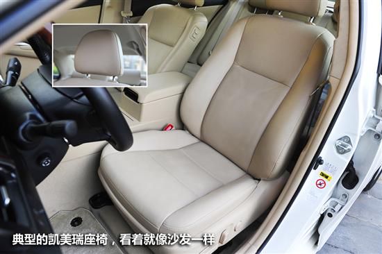 首先是前排座椅,如果您了解上一代凯美瑞,那么您一定对原来车上那个像真皮沙发一样厚重的前排座椅印象深刻,还记得当年我第一次坐凯美瑞的时候,就觉得地方大也不能这么祸害呀,太浪费了。而新车的前排座椅背面向前收缩了7cm,很高兴看到日本人找到了不破坏舒适性又能让椅子更薄的方法。