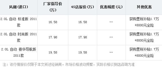 雷诺风朗获购置税补贴1.7万送8000元全险