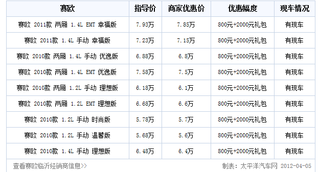 赛欧优惠少量现金 送2千元礼包