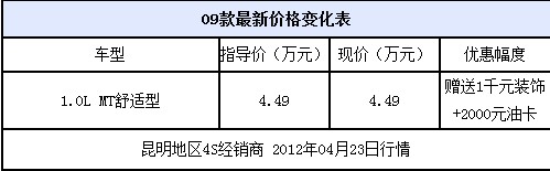目前购铃木奥拓2009款1.0L MT舒适型赠送千元装饰,以及价值2000元油卡,店内现车充足。对奥拓感兴趣的朋友不妨关注一下: