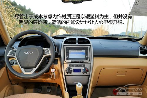 与“当年”的瑞虎相比,2012款车型的内饰工艺已经有了巨大的提升,尽管出于成本考虑内饰材质还是以硬塑料为主,但并没有明显的廉价感,简洁的内饰设计也让人心里很舒服。配置方面,新瑞虎增加了一套带触摸屏的影音娱乐系统,这套系统集成了影音、GPS、倒车影像功能,并带有SD、USB扩展插口。