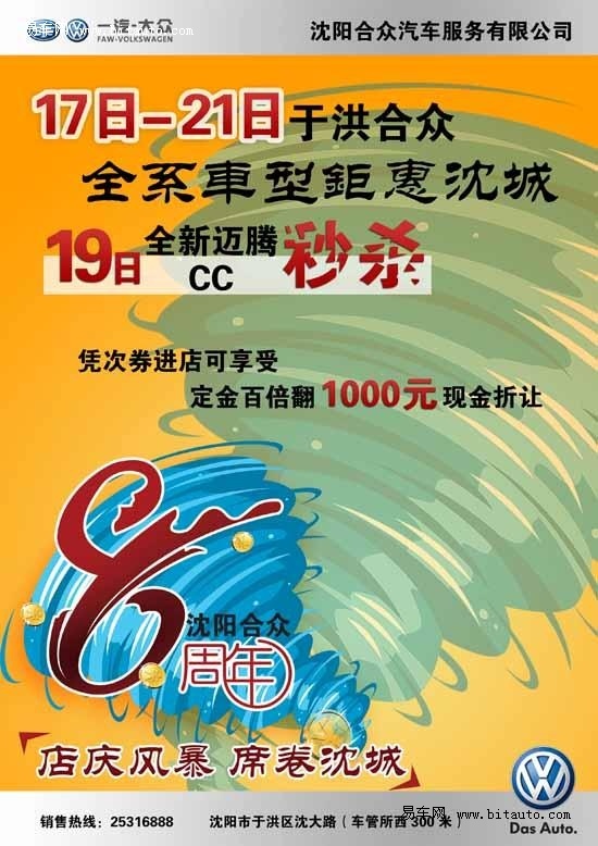 秒杀地点:一汽大众沈大路合众4S店