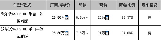 沃尔沃S40最高降7.8万元 店内有车