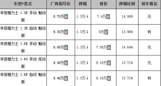 编辑建议:丰田雅力士造型圆润可爱,内饰做工精细,并且具备丰田车一贯的经济省油、操控轻盈的优点,应该说这是一款非常适合女士驾驶的精致小车。不过这款车的市场表现并不尽如人意,主要原因在于厂家定价过高,近期经销商给出13000元的大幅优惠,感兴趣的朋友可以考虑入手。