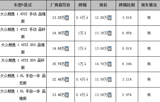 6月第一周降价TOP10——朗逸优惠1万元