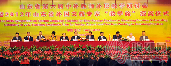 (记者范舜尧 通讯员 王金铭)6月17日,山东省第六届中外教师外语教学研讨会暨2012年外国文教专家“教学奖”颁奖仪式在临沂大学隆重举行。