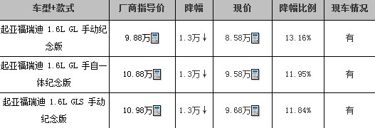 编辑建议:作为起亚的老车型,福瑞迪的优惠力度很大,对于一款总价不到10万的家庭轿车,经销商给出13000的现金优惠,价格应该已经下探至谷底。福瑞迪是起亚汽车启用虎啸式家族前脸的开山之作,这款车外形流畅美观,内部空间够用,黄金排量的1.6L发动机燃油经济性出色,是一款非常优秀的家用车。