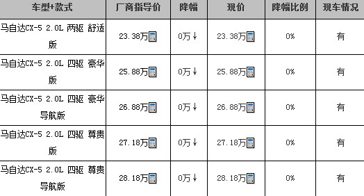 全新紧凑型SUV马自达CX-5现车已经到店,目前店内有白色、黑色现车,首批到店车型均为两驱版本,新车售价为23.38-28.18万元,目前店内已全面接受预订,订金2万元,提车周期在3个月内。感兴趣的朋友不妨到店赏车并了解详情。