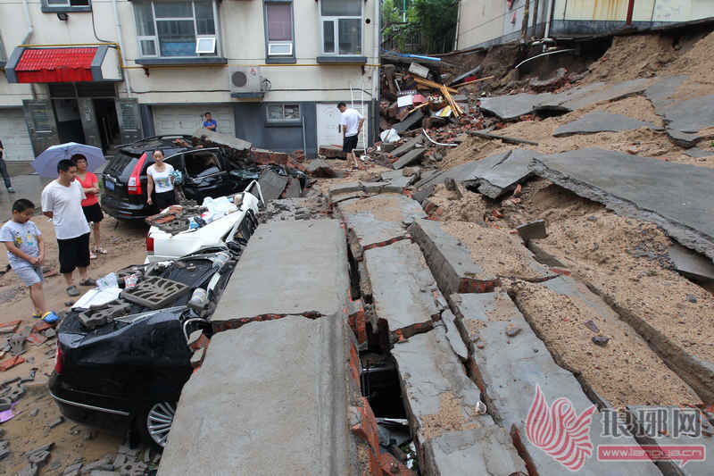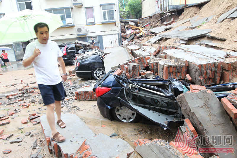 院墙水泡塌砸扁8辆车 出事院墙位于两小区之间