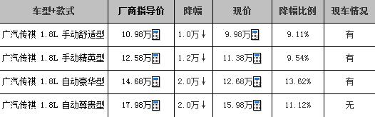 编者建议:传祺系列车型传承了欧洲高端品牌(阿尔法•罗密欧166)多方面的优良基因,在安全和卓越品质两个方面树立了新高度。但是由于上市后,遇到车市的限购政策,使得销售状况并不理想。近期广汽又推出了1.8L车型,现阶段优惠幅度较大,让传祺车型竞争力日益提升。