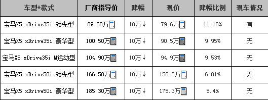 近日笔者从临沂地区宝马汽车经销商了解到,近期购买宝马X5优惠10万元。目前店内有少量现车,车型为领先型,目前店内有黑色车一辆,其他车型需预订,订金2万元,提车需等待3个月。望喜欢该车的网友不妨到店赏车试驾,向经销商进行详细咨询。