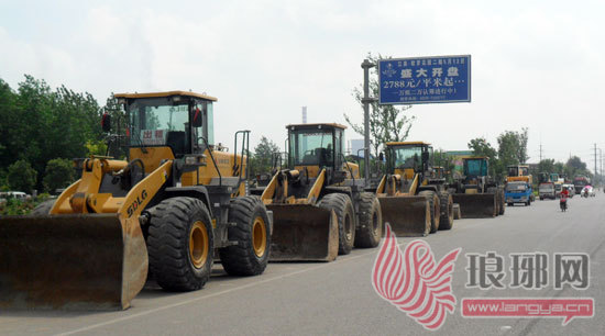数十辆铲车扎堆招租阻碍交通 城管呼吁多方联动