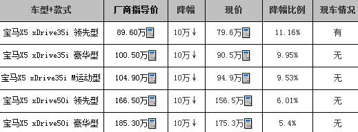 宝马X5最近的优惠政策是:购车优惠10万元。目前店内有少量现车,车型为领先型,目前店内有黑色车一辆,其他车型需预订,订金2万元,提车需等待3个月。喜欢该车的网友不妨到店赏车试驾,向经销商进行详细咨询。