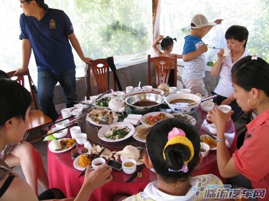 午餐时光也是丰富多彩的,因为我们就餐的农家院就在一片果园里,甜甜的杏挂满枝头,采摘,成了我们行程中的意外收获。蒙山草鸡、小野菜、秋米豆、草鸡蛋等等清一色的农家菜也让我们大饱口福。