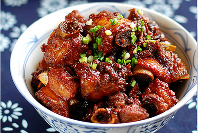 1.排骨用冷水浸泡,浸去血水; 2.排骨洗净沥干水份; 3.油锅姜片爆香; 4.下入排骨,翻炒至微黄; 5.调入没过排骨的料酒,生抽,老抽,冰糖和陈皮,大火煮开转小火炖1个小时左右; 6.排骨软烂后调入盐,并大火收汁。