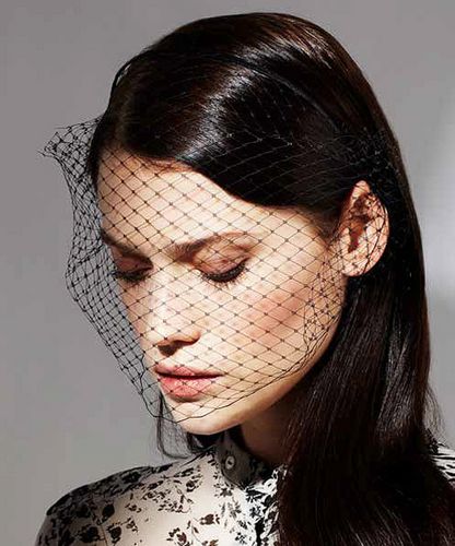 网纱头饰会让你更有神秘感,不过黑色的网纱更酷,跟白色礼服搭配会产生极大的反差,如果你喜欢抢眼的风格就可以尝试这种方法,而白色网纱更为纯洁,还可以代替头纱使用,效果也会不错。要是选择了网纱造型,建议你在妆容方面可以适当加强,让面容和轮廓更为清晰。