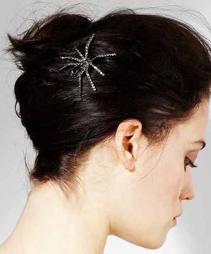 动物造型的发饰很有创意,像这款蜘蛛造型的就会让原本严肃的婚礼多点轻松的气氛,不过这种另类的发饰如果你拿不准使用的效果,就可以选择深色水钻装饰的,更容易被大家所接受。