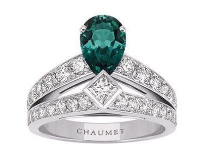 著名的祖母绿型切工钻戒,衬以长锥型边钻,搭配独特的分叉式镶工法,以最少的纯铂金将钻石固定于底座之上,更突显主钻的闪耀与光芒。